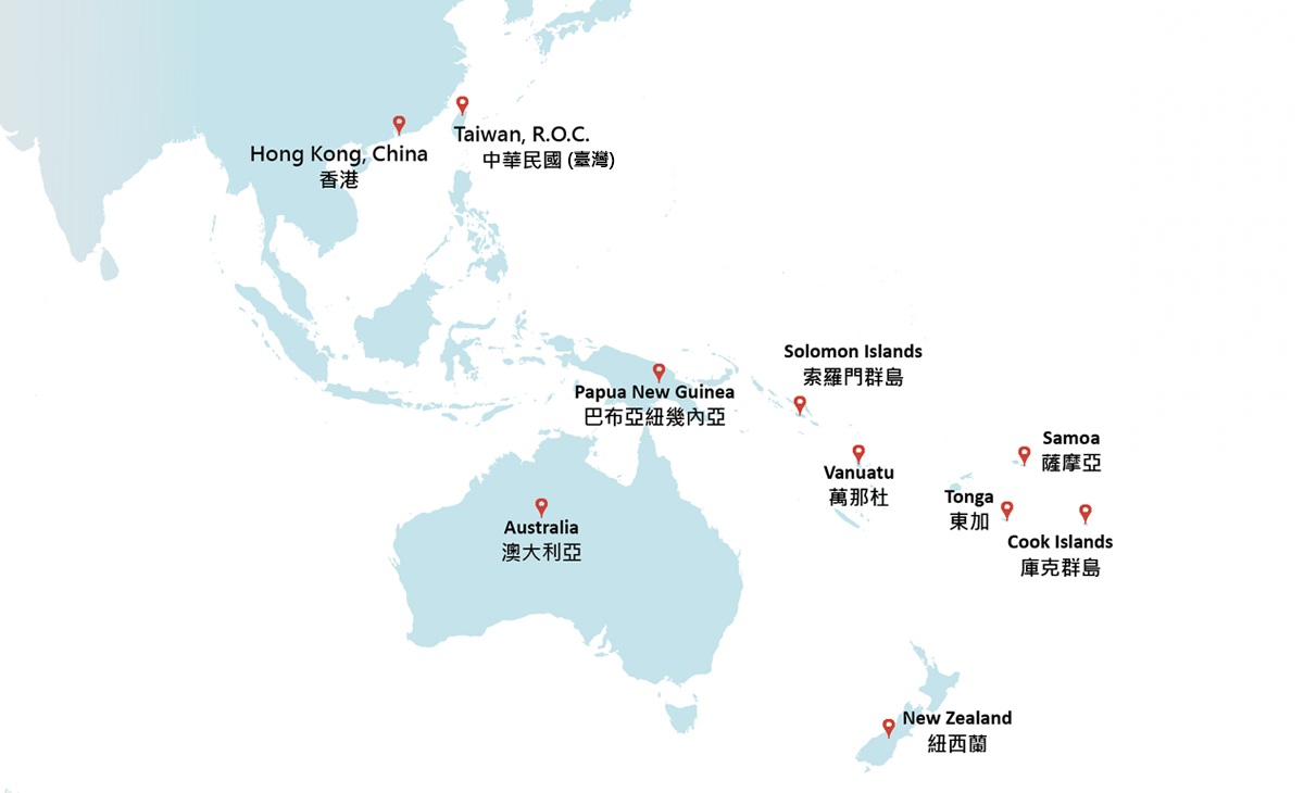 The Australasian and Pacific Ombudsman Region (APOR) is one of the six regional chapters within the IOI. There are currently 18 members in the APOR, listed in alphabetical order: Australia (Commonwealth Ombudsman, New South Wales Ombudsman, Northern Territory Ombudsman, Queensland Ombudsman, South Australia Ombudsman, Tasmania Ombudsman, Victoria Ombudsman, Western Australia Ombudsman, Inspector-General of Taxation and Taxation Ombudsman), Cook Islands Ombudsman, Hong Kong Ombudsman, New Zealand Ombudsman, Papua New Guinea Ombudsman Commission, Samoa Ombudsman, Solomon Islands Ombudsman, The Control Yuan (Taiwan, R.O.C.), Tonga Ombudsman, Vanuatu Ombudsman. The current APOR President is Ms. Niki Rattle, Cook Islands Ombudsman.